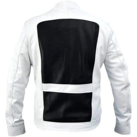 • Men's Black & White Leather Motorcycle Jacket - 34 % Off