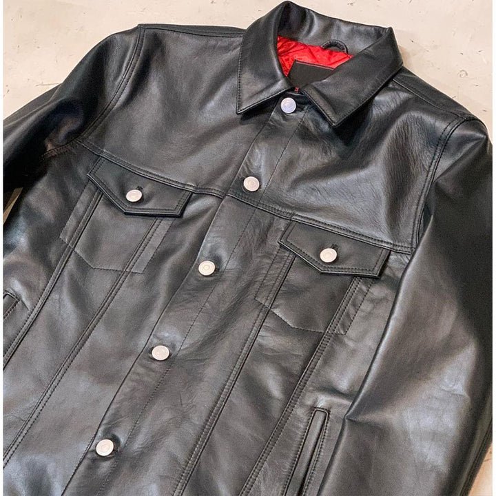 Elevate your wardrobe with the Black Stylish Trucker Slim Fit Leather Jacket, perfect for any occasion!