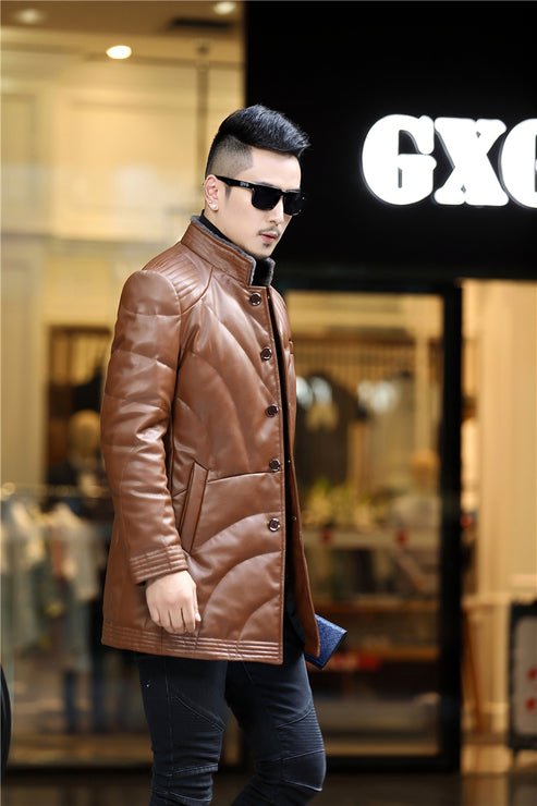 Stay warm and stylish this season with theĀ Haining men’s down Leather Coat. Made from high-quality, genuine leather and filled with cozy down feathers, this jacket is perfect for cold weather. The sleek design and comfortable fit make it a versatile choice for any occasion.