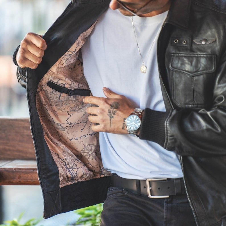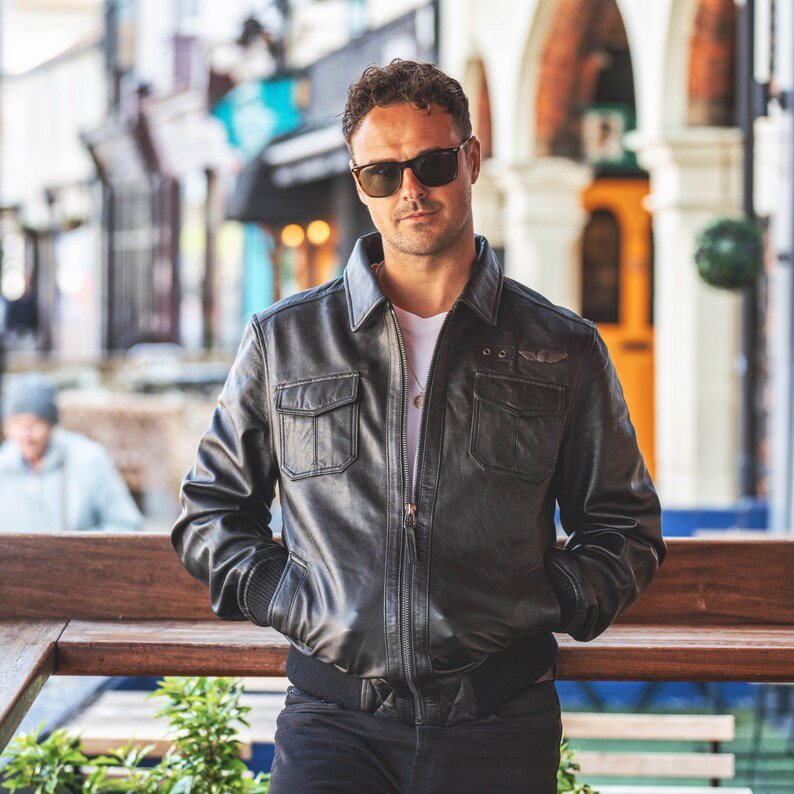 Men Vintage Black Bomber Biker Leather Jacket USAThis Leather Bomber Biker Jacket for men boasts a vintage style and is inspired by Top Gun pilot gear. Made with genuine sheepskin leather, it offers durability and a sleek black design. Stay warm and stylish on your motorcycle or as a bomber coat, and channel your inner pilot with this timeless piece.Product DetailsMaterial: 100% leatherClosure: Front zipperInsulation: Zip-out insulated linerColor: BlackNote:The pictures on the product are captured from high definition cameras with lighting effect, maybe there are some minor changes in colors on the final product, but you can trust us with the quality. The accessories we are using for this jacket such as zip, patches, and button can be little changed or somewhat different from the image shown.All products style can be customized for Women or Men whether it’s a Men design or women we can stitch it according to your requirements.