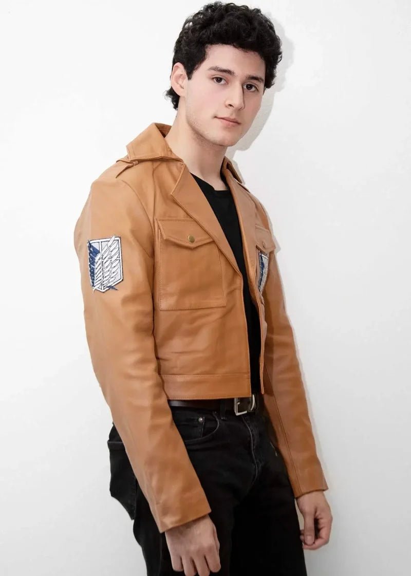 Men’s Attack on Titan Brown Leather Jacket USAExperience ultimate style and protection with our Mens Attack on Titan Leather Jacket. Made of high-quality brown leather, this jacket offers durability and a sleek, modern look. Perfect for fans of the popular anime, you’ll feel like a true titan in this jacket. Order yours now!Features:Color: BeigeMaterial: LeatherSleeves: FullNote:The pictures on the product are captured from high definition cameras with lighting effect, maybe there are some minor changes in colors on the final product, but you can trust us with the quality. The accessories we are using for this jacket such as zip, patches, and button can be little changed or somewhat different from the image shown.All products style can be customized for Women or Men whether it’s a Man design or women we can stitch it according to your requirements.