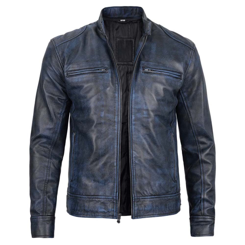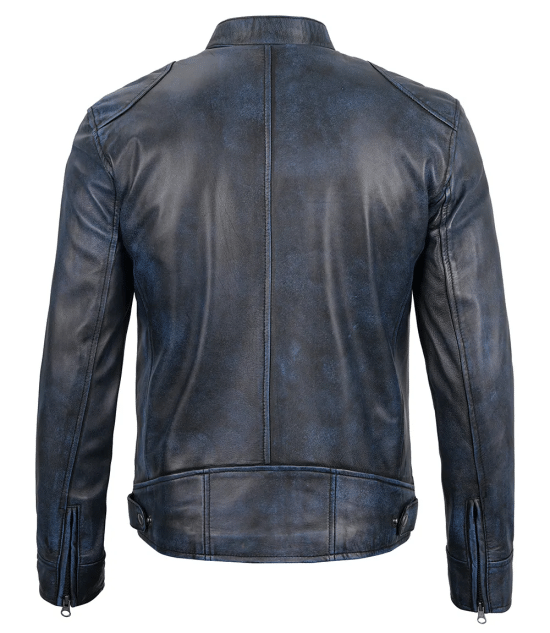 Shop Mens Dodge Blue Waxed Cafe Racer Leather Jacket