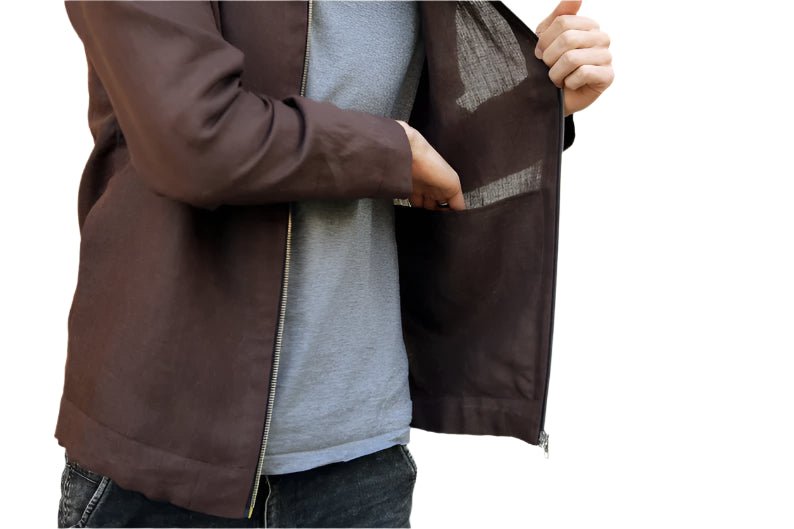 This men’s linen bomber jacket and summer cardigan is the perfect addition to your wardrobe. Made from lightweight linen, it provides both style and comfort for the warmer months. With its classic design and versatile functionality, you can easily dress it up or down for any occasion.