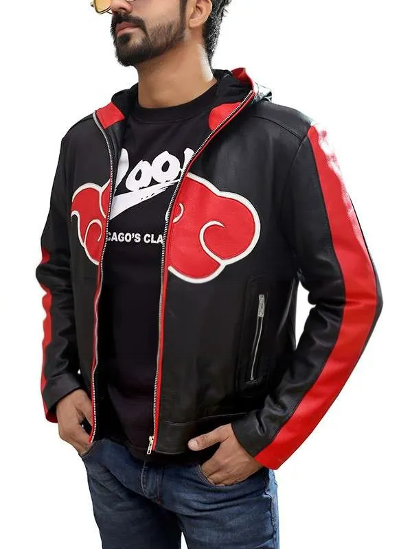 Naruto Akatsuki Hooded Leather Jacket USAThis Naruto Akatsuki Hooded Leather Jacket offers a stylish and unique look, crafted with high-quality materials. The hood provides extra warmth for cooler weather, while the leather material offers durability and a sleek appearance. Perfect for fans of the popular anime series, this jacket is a must-have addition to any wardrobe.Features:Color: BlackMaterial: LeatherSleeves: FullNote:The pictures on the product are captured from high definition cameras with lighting effect, maybe there are some minor changes in colors on the final product, but you can trust us with the quality. The accessories we are using for this jacket such as zip, patches, and button can be little changed or somewhat different from the image shown.All products style can be customized for Women or Men whether it’s a Man design or women we can stitch it according to your requirements.